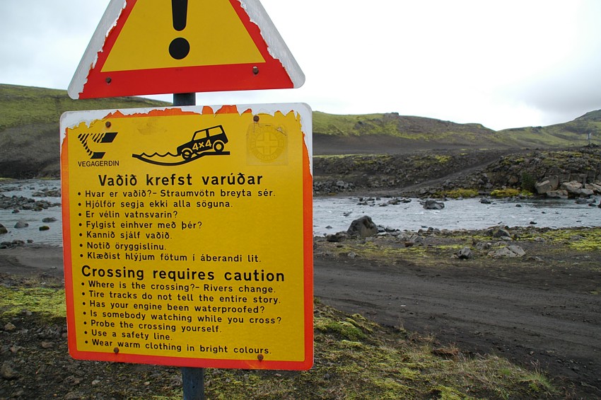 Vorsicht: Jeep-Fahrer erhalten letzte Instruktionen vor der Furt. Caution: Jeep drivers get final instructions before crossing the river.