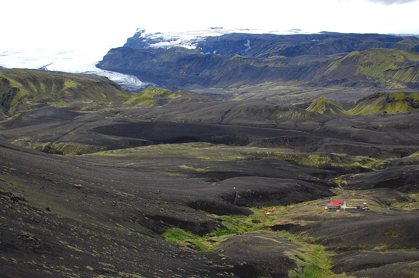 Grüne Oase: Geschützt und beinahe idyllisch liegt die Herberge von Emstrur. Green oasis: Sheltered and almost idyllic the hut of Emstrur is situated.