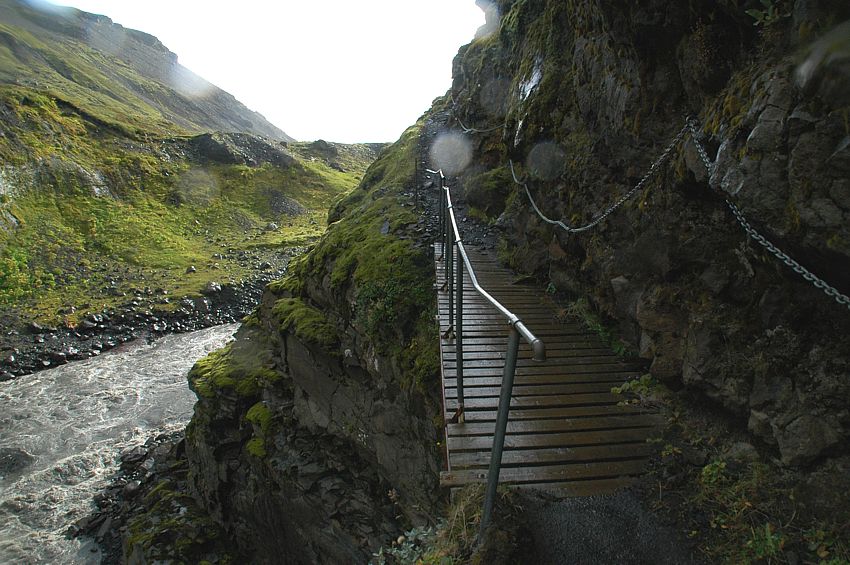 Abgesichert: Der Gegenanstieg auf der anderen Flussseite ist problemlos. Secured: Reascent on the other side is done without problems.