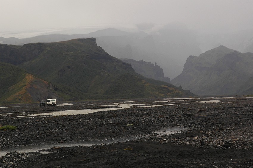 Playing safe: The ford is dangerous also for cars and buses. Here the warden tractor