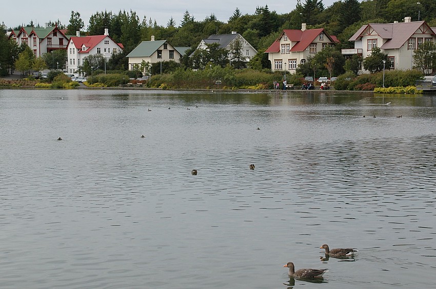 Geese Pond: Poultry on lake Tjörnin with captain villas
