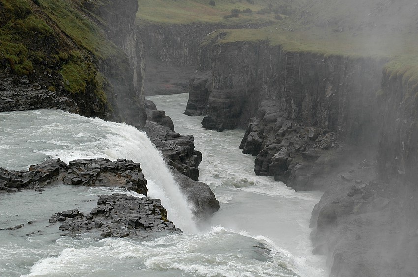 Heute eisgrau: Selbst Gullfoss braucht Sonnenstrahlen, um gülden zu sein