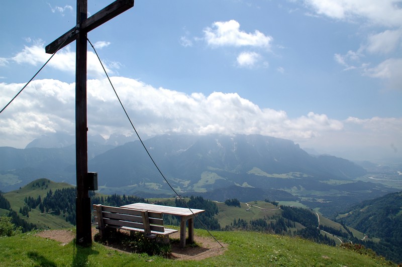 Gemütlich: Runder Gipfel des Wandberg mit Blick auf das Inntal