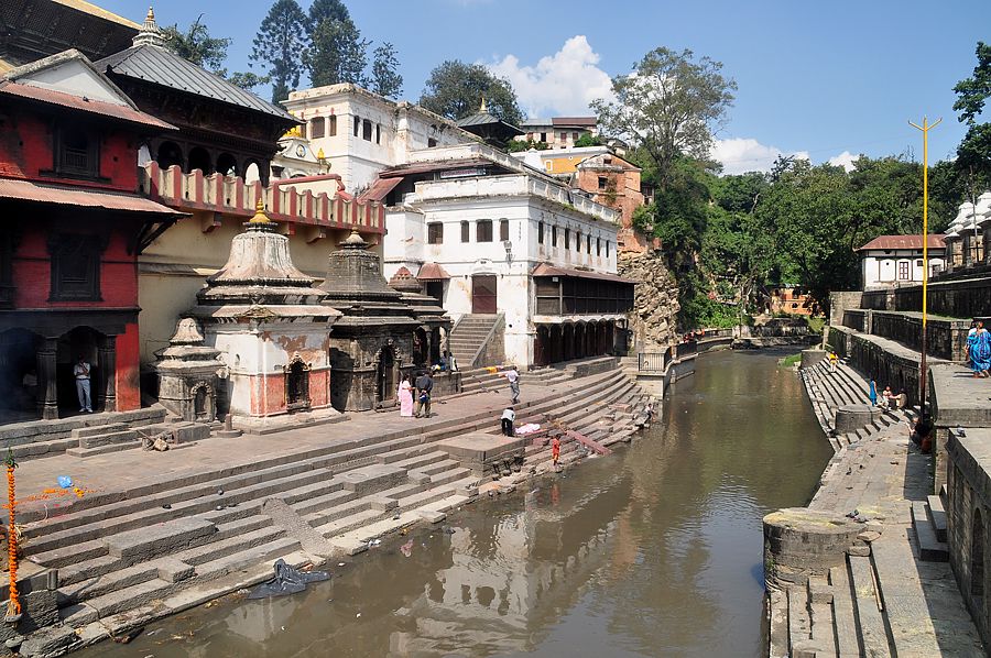 Trübe Fluten: Der Bade-Fluss Bagmati nimmt die Asche auf