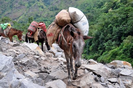 Mit Mulis wird hier alles transportiert, was in den Dörfern gebraucht