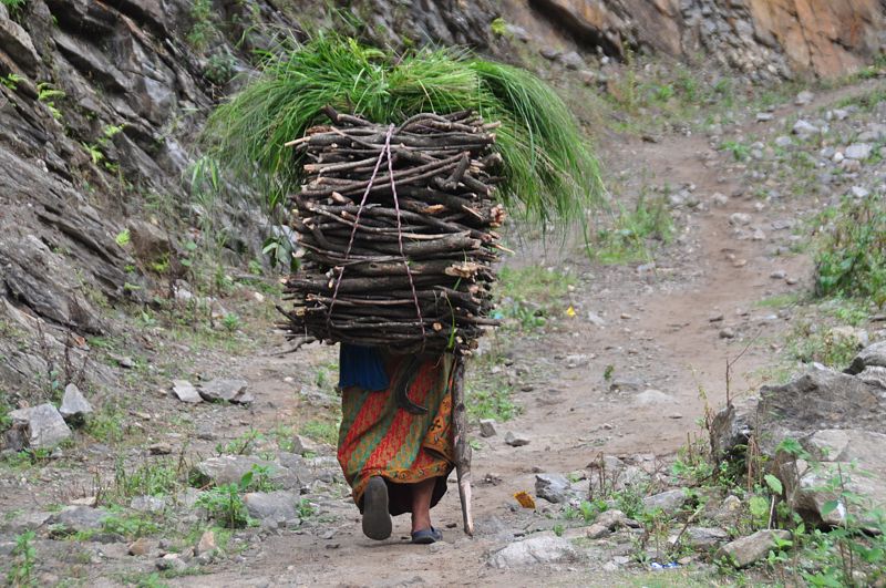 Transport II: Wer keine Mulis bezahlen kann, macht es selbst. Und auf kurzen Wegen vom Wald nach Hause sowieso.