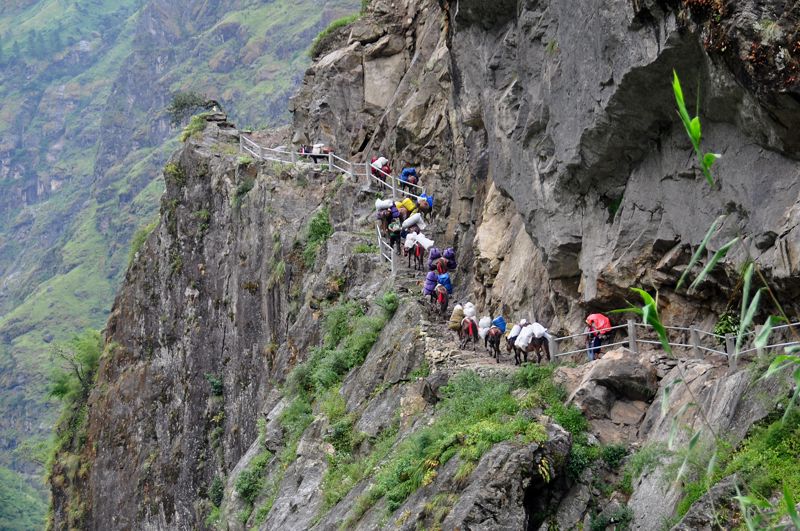 Auf 4 Hufen: Die Vierbeiner sind auf den Bergwegen wie zuhause. Die Geländer sind eher für die Touristen.