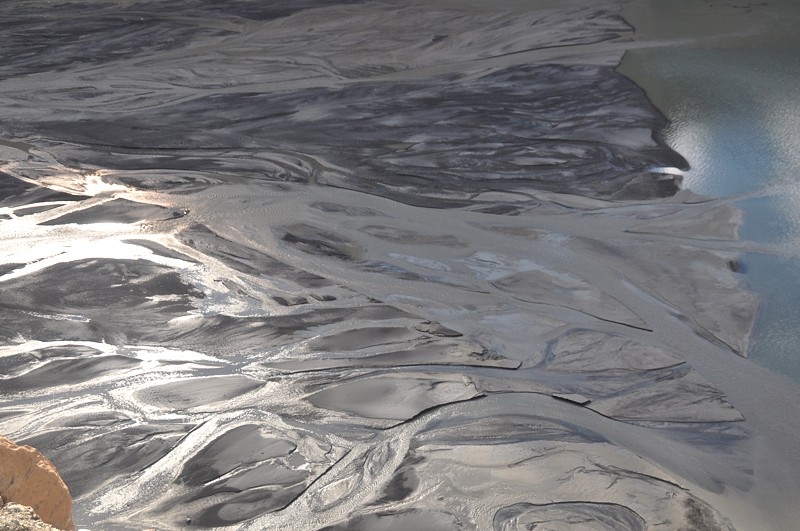 Mit einem Delta fließt das Wasser des Gangapurna-Gletschers in den See.