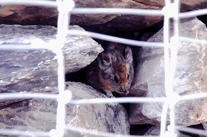 Die Himalaya Maus zeigt sich zwischen felsigem Gestein am Wegesrand.
