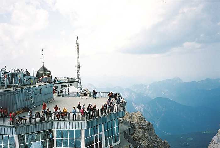 Ernüchternd: Die Gipfelarchitektur ist üppig. Geradezu anachronistisch wirkt dazwischen das als klassische Berghütte betriebene Münchner Haus.